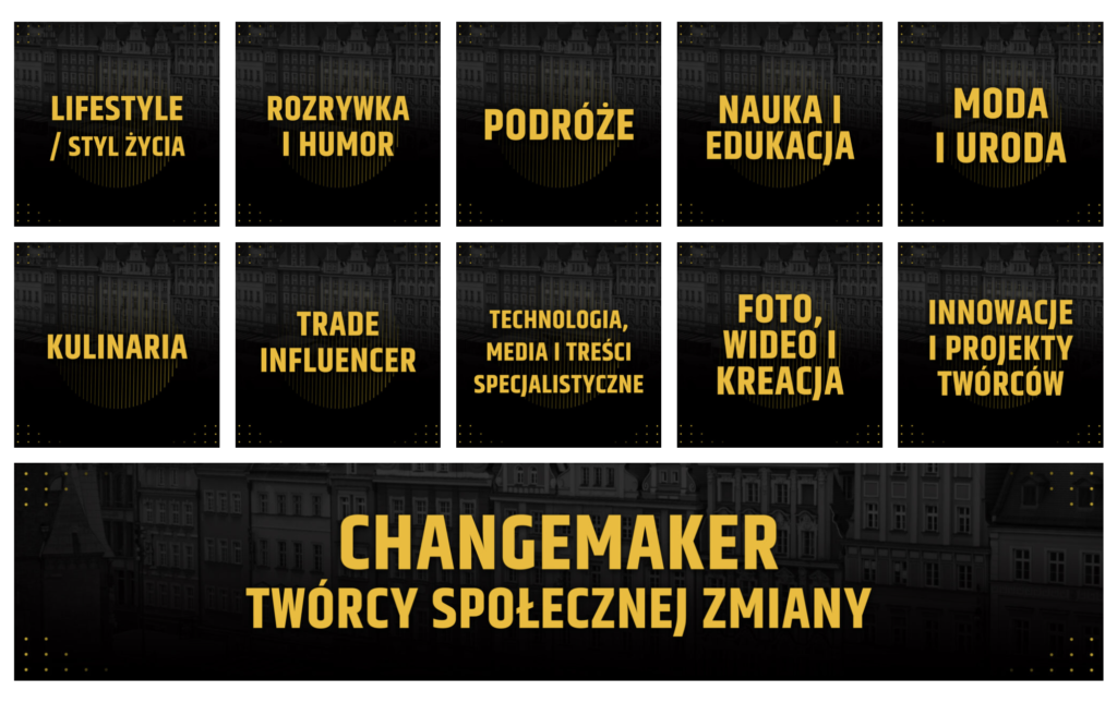 Gala Influencers LIVE Awards jest częścią wydarzenia; kategorie i zasady zgłoszeń/nominationów publikowane są przez organizatora (szczegóły są na stronie lub w regulaminie). Jeśli chcesz wystartować — śledź komunikaty organizatora. Zgłąszać może się każdy Twórca lub Twórczyni Internetowa o ile zgłosi się do odpowiedniej kategorii.